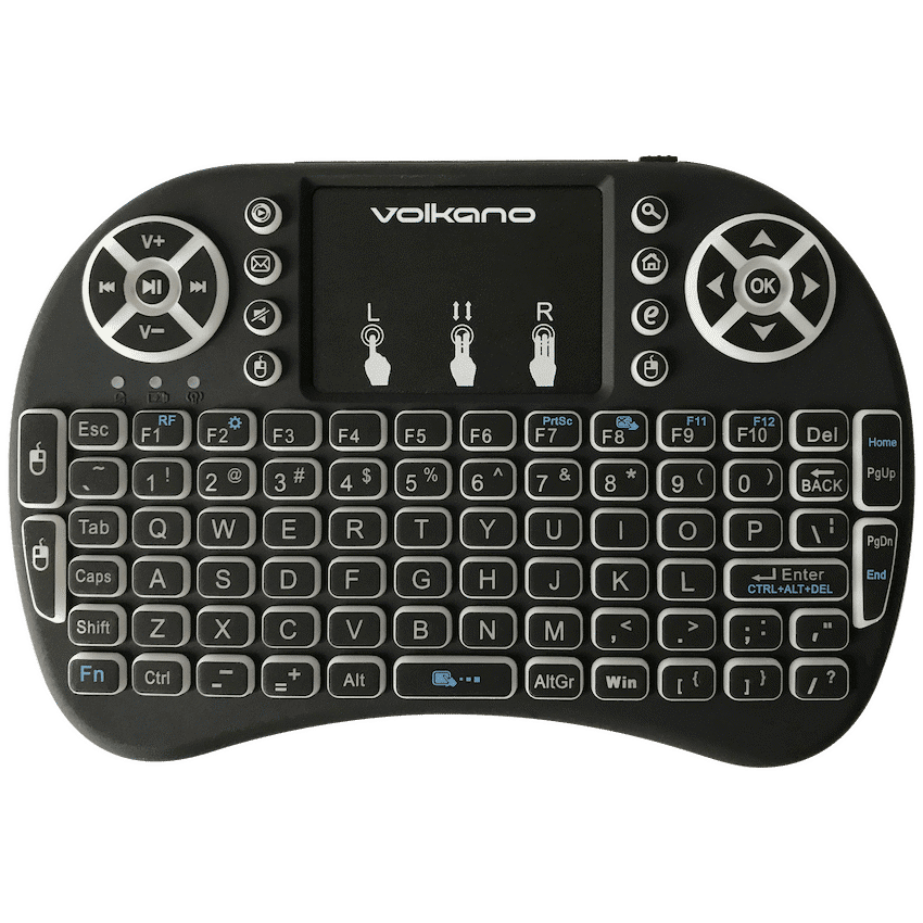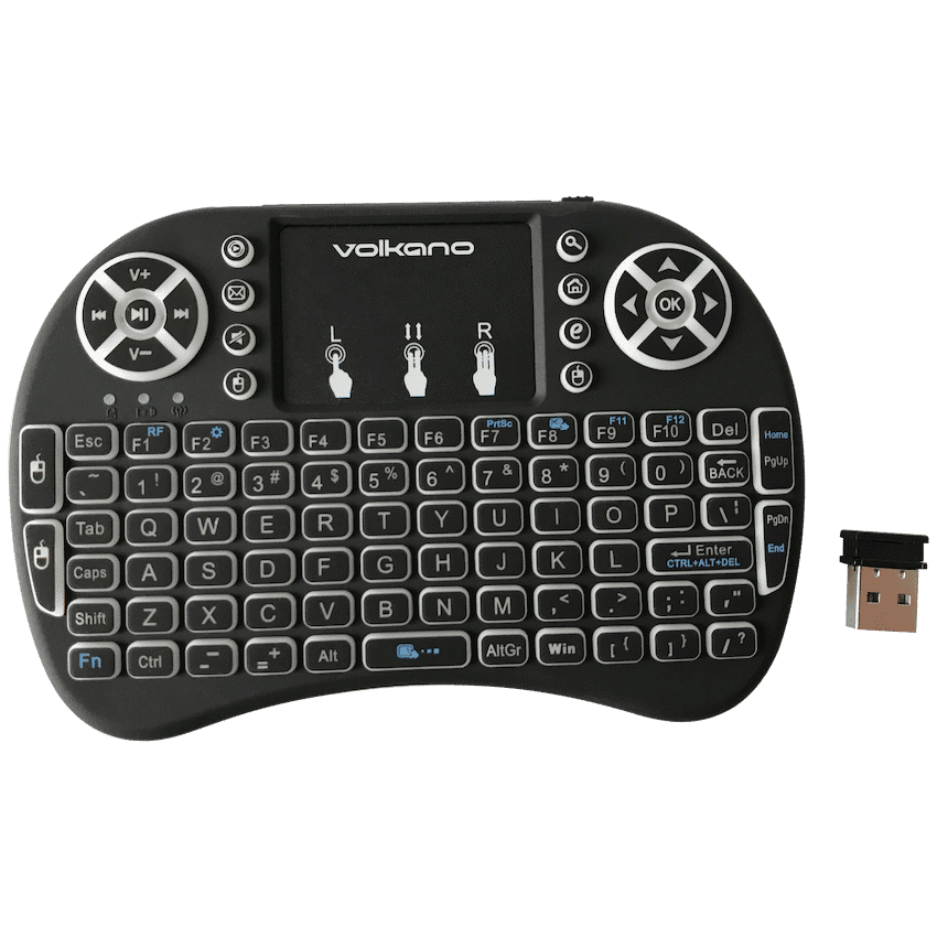Upgrade your entertainment setup with the Volkano Control Series Smart TV Remote Control Keyboard and Trackpad, the ultimate all-in-one solution for seamless multimedia control. Designed for convenience, it combines a full wireless keyboard, multi-touch trackpad, and dedicated media keys into one compact, portable device.Perfect for Smart TVs, laptops, PCs, projectors, and media boxes, this universal controller connects easily via a wireless USB receiver, with no drivers required. The 104-key layout with 18 dedicated media keys makes browsing, searching, and playback control effortless, while the built-in trackpad eliminates the need for a separate mouse.For added convenience, the Volkano Control Series is rechargeable via USB, and its backlit keys ensure easy typing and navigation in low-light conditions. Whether you’re streaming, gaming, or working, this controller offers reliable, comfortable wireless control.