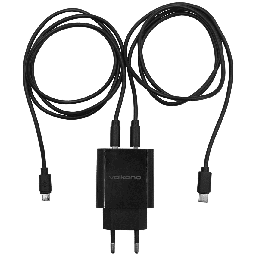 Charge two devices simultaneously and say goodbye to the fight for socket and multi-plug space with the Volkano Cupla Dual Wall Charger. Featuring a Micro USB and a Type-C charge cable, you can have your different chargers all in one neat device that has been designed with your convenience in mind. In fact, this awesome little gadget has also been made with a universal voltage for travelling. SPECIAL FEATURES: Charge 2 Devices at the same Time Includes 2 Charge Cables Universal Voltage for TravelingSPECIFICATIONS: – Connection Type: USB Type – A – Output Power: 5 VDC @ 3.1 A – Input Voltage: 100~240 V AC – Output 1: 5 V DC, 2.1 A – Output 2: 5 V DC, 1 AWhat’s in the box1 x Volkano Cupla Dual Wall Charger1 x Micro USB Charge Cable1 x Type-C Charge Cable