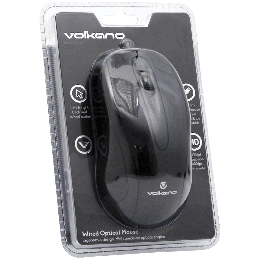 Elevate your everyday computing with the Volkano Earth Series Wired Mouse. Designed for comfort and consistent performance, this lightweight optical mouse features precise tracking with a 1600 DPI sensor-perfect for daily use, whether you’re browsing, working, or studying.Thanks to its ambidextrous design and soft-touch finish, it’s gentle on the wrist during extended use. With a generous 1.5 m USB cable, it’s ready to plug into Windows, Mac, Android, and iOS devices (via adapter), making it versatile across platforms. Robust yet affordable, this mouse pairs functionality with eco-conscious design values-delivering smooth, reliable performance you can feel good about.