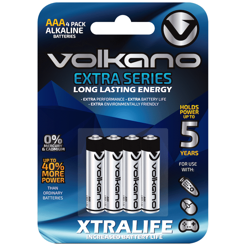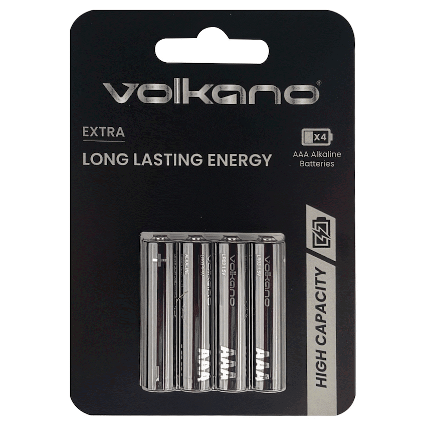Keep your small electronics running smoothly with the Volkano Extra Series Alkaline AAA Batteries (Pack of 4). These 1.5?V alkaline batteries offer long?lasting energy for everyday devices such as TV remotes, wireless mice, toys, clocks and more. Designed for durability and reliability, they resist leaks and provide consistent performance from the moment you unwrap them.Whether you’re stocking up for home, office or school use, this 4?pack ensures you always have power on hand when you need it.