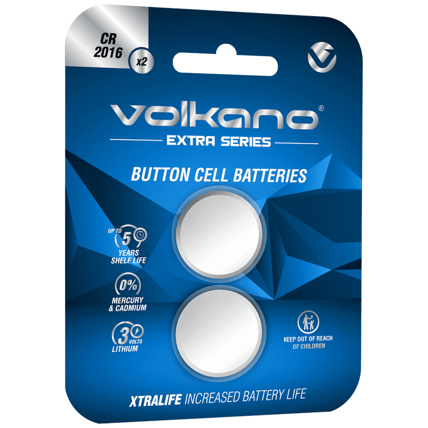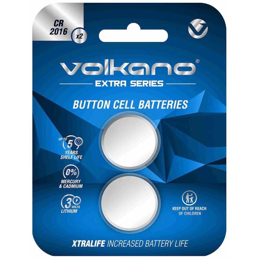 Power your small electronic devices with confidence using the Volkano Extra Series CR2016 Lithium Batteries. With a voltage output of 3V, these compact coin cell batteries are ideal for watches, calculators, remotes, and fitness trackers.Each battery is made from lithium for long-lasting, stable performance, and contains 0% mercury and cadmium, making it a safer choice for both your devices and the environment. Designed with a 5-year shelf life, you can store these batteries for future use without worrying about performance loss.Compact in size and dependable in power, this 2-pack of CR2016 batteries is a must-have for any household or office essentials drawer.