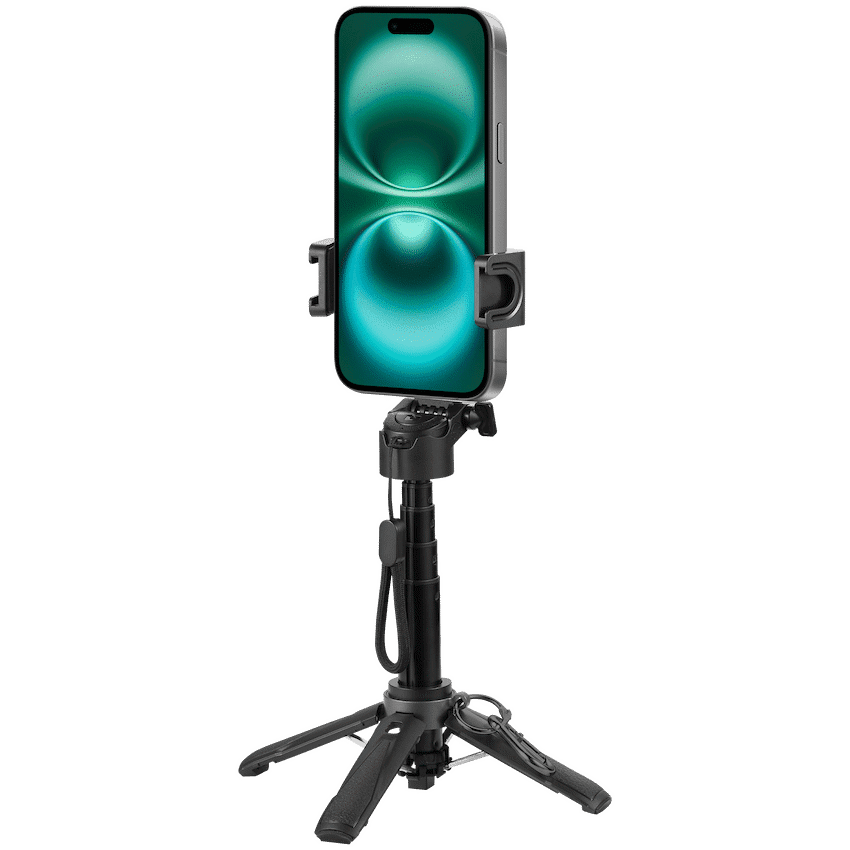 4-in-1 multifunctional phone grip, selfie stick, Bluetooth camera remote, including tripod.