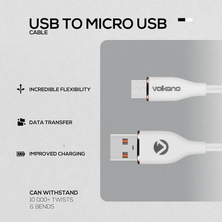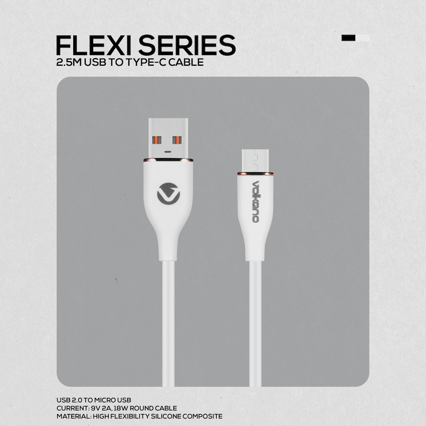 Volkano Flexi Series USB to Micro USB 2.5m 18w – White