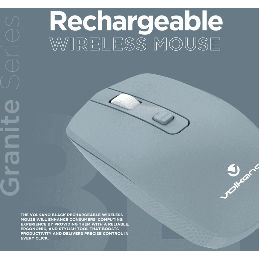Meet the Volkano Granite Series Rechargeable Wireless Mouse-a stylish, high-performance companion built for productivity and modern convenience. This mouse eliminates the hassle and waste of disposable batteries with a built-in rechargeable unit that delivers over 30 days of use on a single charge via convenient USB?C recharging.Enjoy smooth, responsive control with adjustable DPI settings (1000 / 1200 / 1600), giving you the flexibility to optimise precision whether you’re browsing, designing, or gaming. Its ergonomic shape and lightweight frame ensure comfort during extended use, and its modern design fits seamlessly into both professional and home setups.
