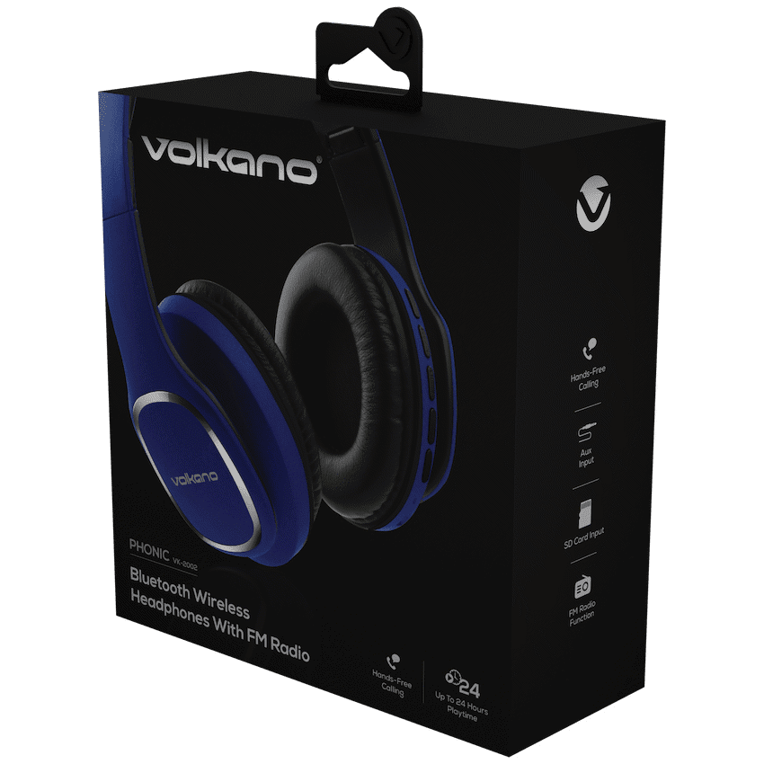 https://www.youtube.com/watchv=4nGdDhJdEYAExperience freedom, flexibility, and full-featured sound with the Volkano Phonic Series Bluetooth Headphones. Designed for everyday audio lovers, these wireless headphones deliver up to 24 hours of battery life, making them perfect for long commutes, gym sessions, or focused workdays. Whether you’re streaming via Bluetooth, tuning into FM radio, or playing tracks directly from an SD card, you’re always in control of your listening experience.Need a backup plan when your battery runs low Just plug in the included aux cable and keep the music going-no Bluetooth needed. Stay connected with hands-free calling thanks to the built-in microphone, and enjoy powerful, balanced audio with 40mm drivers and high sensitivity.These headphones are your all-in-one audio companion, offering true versatility and impressive sound-all wrapped in the trusted quality of the Volkano brand.Feature Highlights:Long Battery Life – Enjoy up to 24 hours of wireless playtimeHands-Free Calling – Built-in mic makes calls effortless and clearAux Cable Support – Keep listening even without Bluetooth or batteryFM Radio – Access your favourite radio stations on the goSD Card Playback – Play music directly from your micro SD card-no phone needed40mm Drivers – Delivers rich sound with deep bass and crisp highsBluetooth 5.3 – Faster pairing, more stable connections, and energy efficiencyTechnical Specifications:Bluetooth Version: V5.3Chipset: JLSupported Profiles: AVRCP, A2DP, HFPBluetooth Range: 10mImpedance: 32?Frequency Range: 20Hz-20kHzSensitivity: 110dB +/-5dBDriver Size: 40mmBattery Capacity: 400mAhCharging Time: 2.5 HoursCharge Input: 5V DC, 0.2APlaytime: Up to 24 Hours (50% Volume), 20 Hours (100% Volume)What’s in the Box:Volkano Phonic Series Bluetooth HeadphonesUSB-C Charging CableAux CableInstruction ManualStay connected, stay entertained-whether you’re online or offline. The Phonic Series is built to move with you.