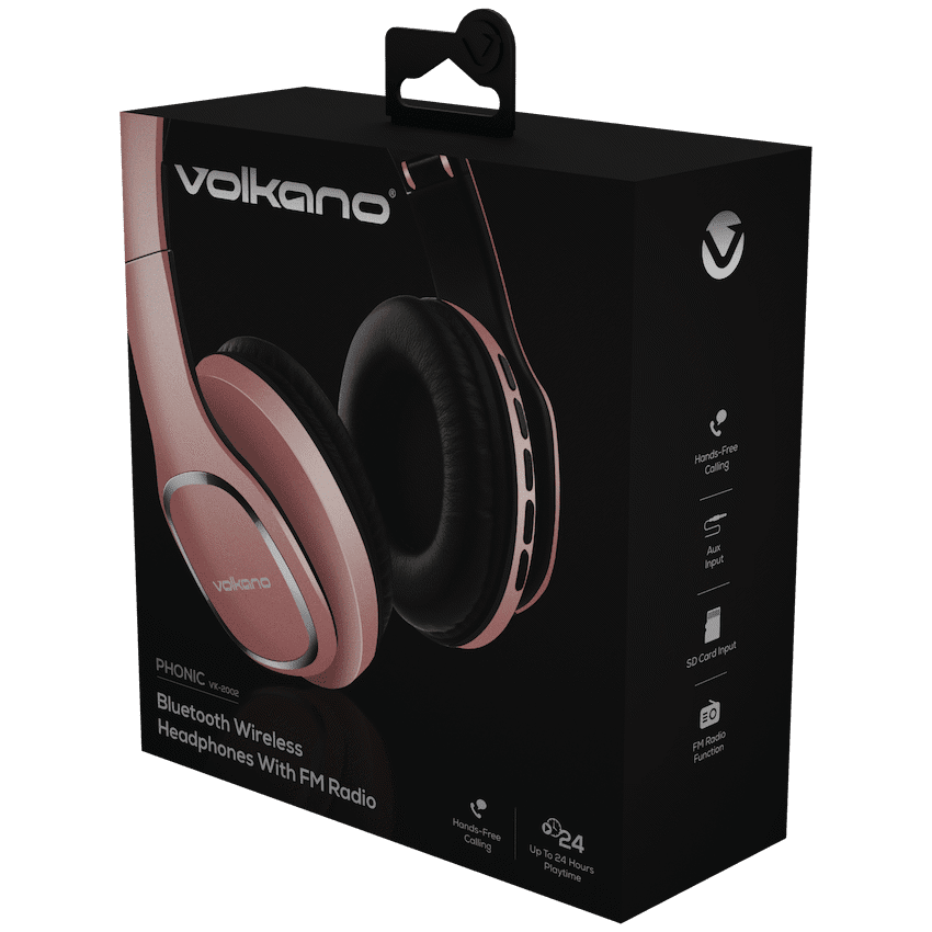 Experience freedom, flexibility, and full-featured sound with the Volkano Phonic Series Bluetooth Headphones. Designed for everyday audio lovers, these wireless headphones deliver up to 24 hours of battery life, making them perfect for long commutes, gym sessions, or focused workdays. Whether you’re streaming via Bluetooth, tuning into FM radio, or playing tracks directly from an SD card, you’re always in control of your listening experience.Need a backup plan when your battery runs low Just plug in the included aux cable and keep the music going-no Bluetooth needed. Stay connected with hands-free calling thanks to the built-in microphone, and enjoy powerful, balanced audio with 40mm drivers and high sensitivity.These headphones are your all-in-one audio companion, offering true versatility and impressive sound-all wrapped in the trusted quality of the Volkano brand.Feature Highlights:Long Battery Life – Enjoy up to 24 hours of wireless playtimeHands-Free Calling – Built-in mic makes calls effortless and clearAux Cable Support – Keep listening even without Bluetooth or batteryFM Radio – Access your favourite radio stations on the goSD Card Playback – Play music directly from your micro SD card-no phone needed40mm Drivers – Delivers rich sound with deep bass and crisp highsBluetooth 5.3 – Faster pairing, more stable connection Specifications:Bluetooth Version: V5.3Chipset: JL Profiles: AVRCP, A2DP, HFPBluetooth Distance: 10mImpedance: 32?Frequency Range: 20Hz – 20kHzSensitivity: 110dB+/-5dBBattery: 400mAhDriver Size: 40mmCharging Time: 2.5 HoursCharge Input: 5V DC, 0.2APlaytime (50% Volume): 24 HoursPlaytime (100% Volume): 20 HoursWhat’s in the box1 x Volkano Phonic Series Bluetooth Headphones1 x Instruction Manual1 x Micro USB Charging Cable1 x Aux Cable