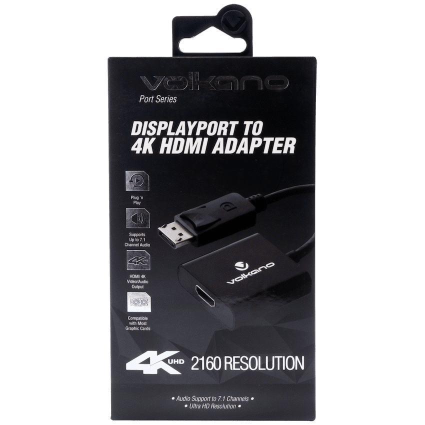 Volkano Port series DisplayPort to 4K HDMI converter 10cm – black color- Easily convert your DisplayPort to an HDMI port- Ideal to connect to projectors, TVs, monitors, anything that has a HDMI port- The perfect choice for your presentations, conferences, workshops, or even lectures where an HDMI port is absolutely essential- Plug-and-play! You don’t need to install any drivers or software before you can use it..- You can use an external display as your main mirrored workspace, or extend your desktop to an additional screen- Under mirror mode, you could view your laptop or desktop screen on an external display or projector- Play your favorite games or watch movies on TV easily- Under extend mode, you could connect a second display to your computer, giving you a larger desktop on which to work on- With extend mode using presentation software, you can also show your slides on a second display, while your primary display keeps your notes and previews your next slidesWhat’s in the box1 x Displayport to HDMI Converter