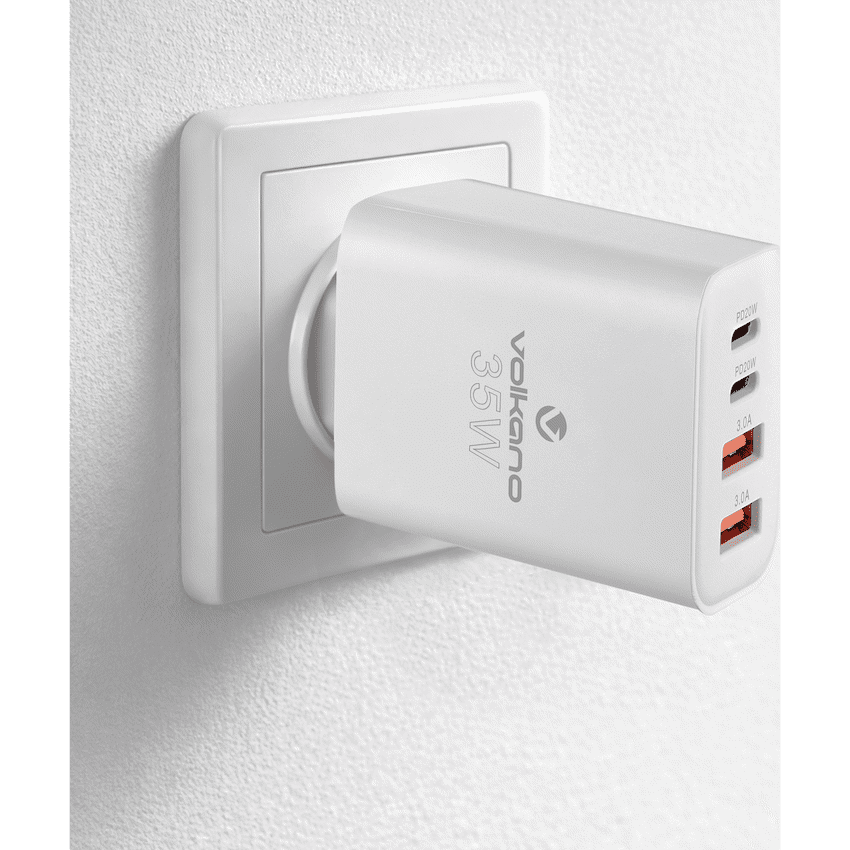 Volkano Quad Series 2x PD USB-C 2x USB-A 3a 35W Wall Charger