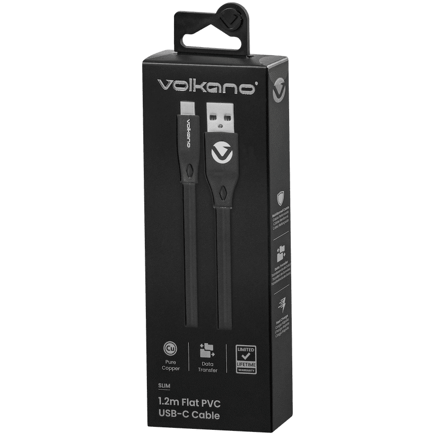 Volkano Slim Series Flat PVC Type-C Cable 1.2m – Black