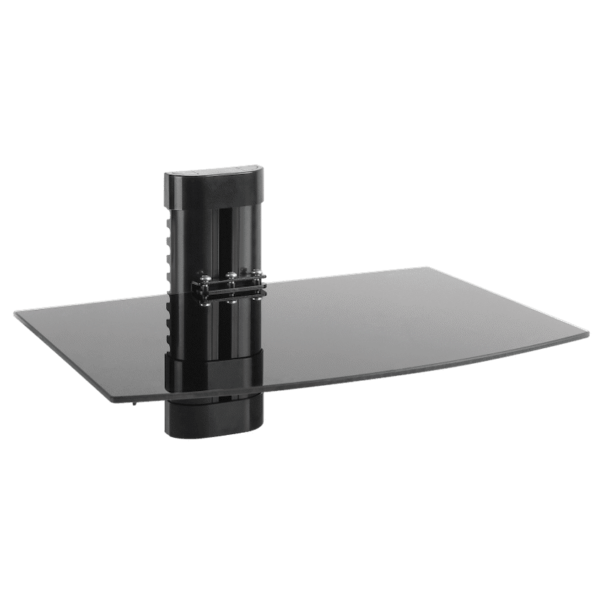 Upgrade your home entertainment setup with the Volkano Steel Series Single Wall Shelf, combining elegant design with sturdy functionality. Built from aluminium, steel, and tempered glass, this unit is ideal for supporting media devices such as decoders, gaming consoles, routers, or DVD players-up to 8kg in weight.The tempered glass shelf measures 360 x 250mm and rests on a strong steel support structure, ensuring stability and durability. The height-adjustable design allows you to customise positioning to best suit your TV and space layout, while the built-in cable management system keeps things tidy and organised.Installation is simple with the included tool kit, spirit level, and drilling template, making it a convenient DIY project.