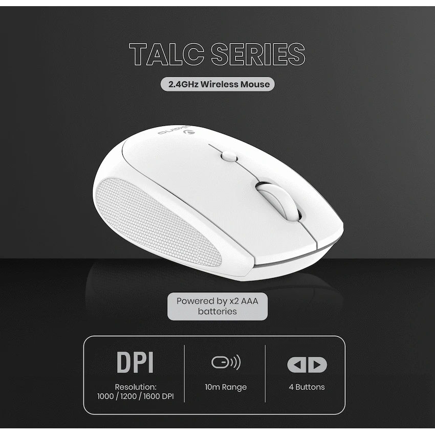 Effortlessly navigate your digital world with the Volkano Talc Series Wireless Mouse. Designed for reliable 2.4?GHz wireless performance, this ambidextrous mouse offers seamless plug?and?play functionality through a Nano USB receiver-no drivers needed. With adjustable DPI settings (1000 / 1200 / 1600), you can tailor cursor sensitivity to suit browsing, office tasks, or creative workflows.Comfortably built for both left- and right-hand users, its ergonomic design ensures reduced strain for extended use. With a 10-metre operating range, this mouse blends sleek style with everyday practicality-making it a smart choice for both home and office setups.