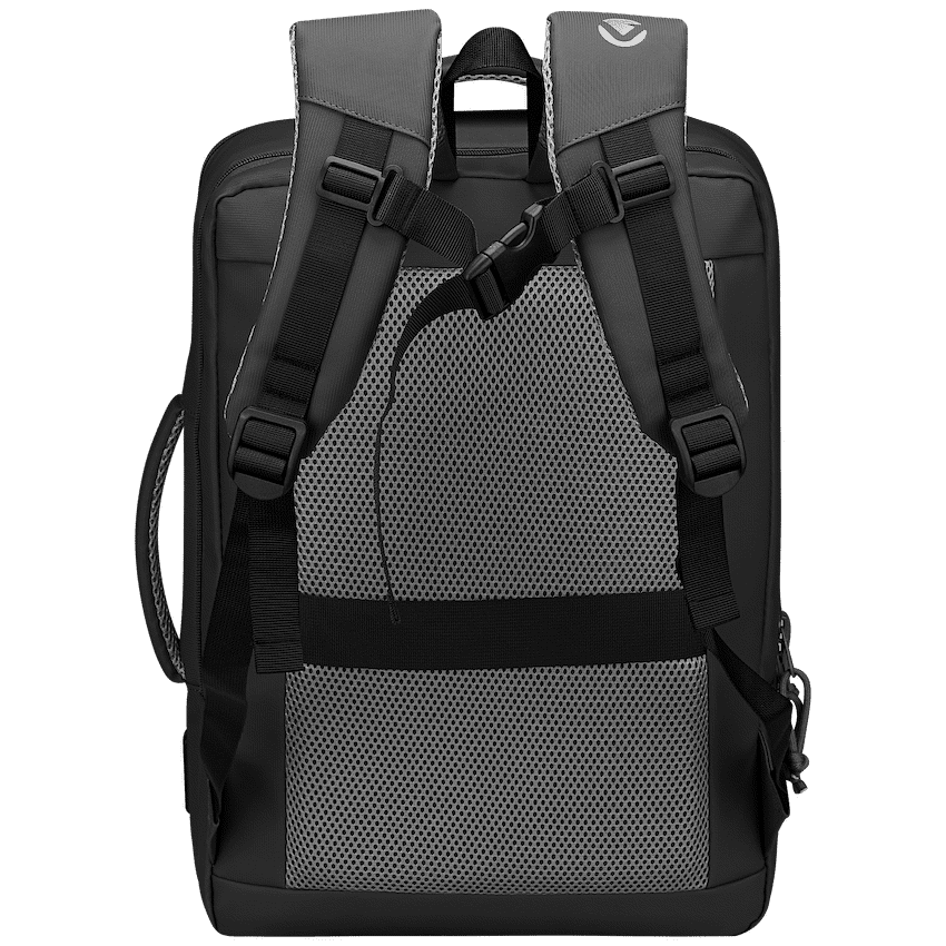 A high-quality laptop backpack with a padded compartment that fits laptops up to 15.6″, designed to accommodate all your business and overnight packing needs, whilst fitting neatly under the seat in front of you on an aeroplane. Multiple internal and external pockets provide ample storage for organizing chargers, cables, power banks, keys, wallets, water bottles, notebooks, documents, and other daily essentials. Made with durable, water-resistant materials and reinforced stitching for long-lasting use. Features adjustable padded shoulder straps, breathable back padding, a top handle for carrying, side handles for easy lift, and a secure zipper closure for added protection during travel or daily use.