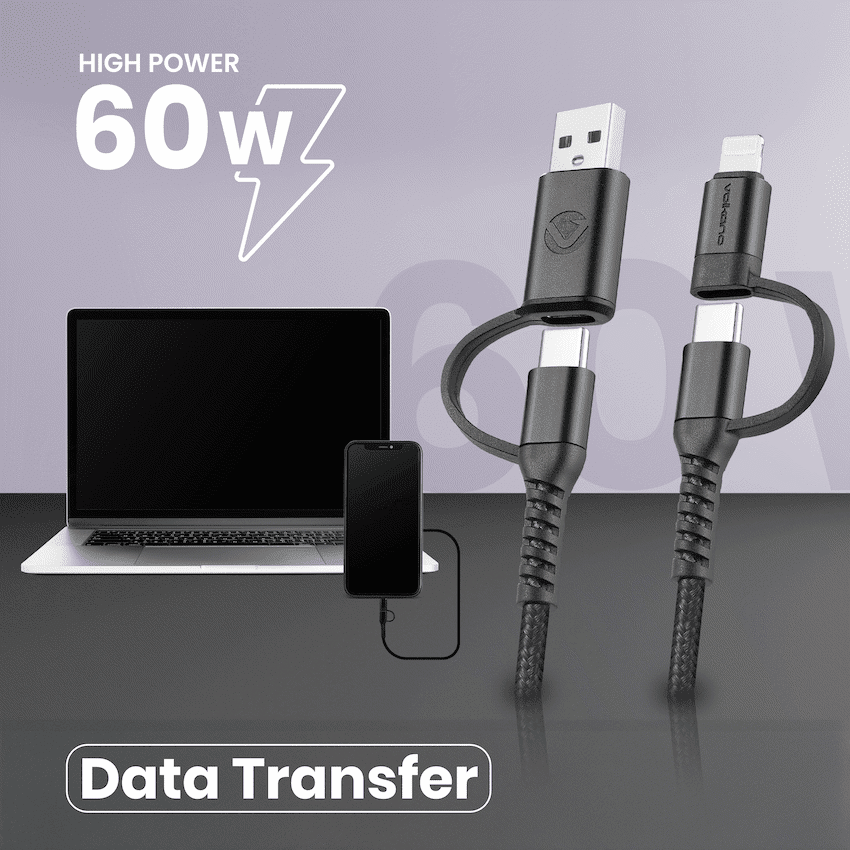 Volkano Weave Series 4-in-1 Charge & Data Cable 60w – 1.2m/4ft