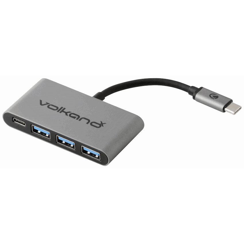 VolkanoX Core Hub series USB Type C to 3x USB 3.0 plus Power – 10cm – Charcoal