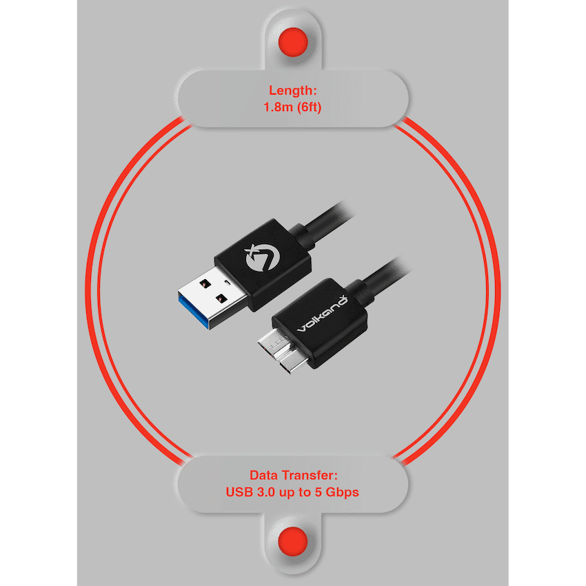 Experience fast, dependable connectivity with the VolkanoX Data Series USB 3.0 Micro USB Cable 1.8 m. This cable delivers lightning-fast SuperSpeed USB 3.0 performance at up to 5 Gbps, making it the ideal choice for transferring large files, connecting external drives, or syncing high-performance devices using Micro-B connectors.Built with a high-quality pure copper conductor, it ensures consistent signal integrity and durability. The 1.8 metre length gives you flexibility-whether you’re working on your desk, charging from a distance, or using it on the go. Plus, it supports efficient charging up to 2 A at 5 V, so you can power your devices quickly and safely.