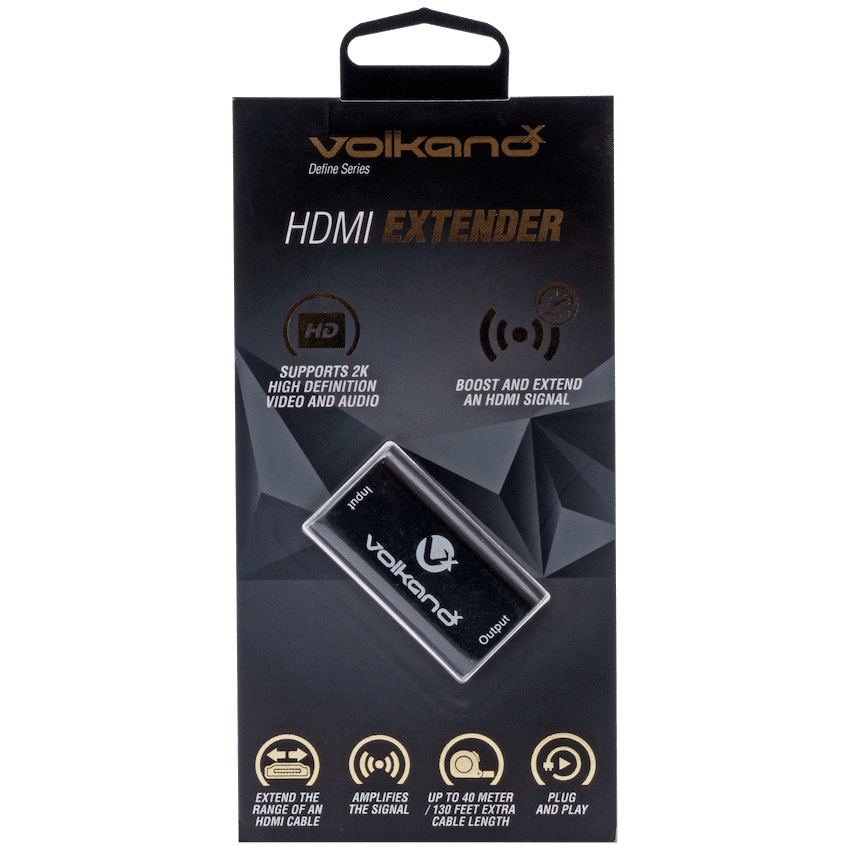 Expand your setup and break free from distance limitations with the VolkanoX Define Series HDMI Extender 40 m. This compact and convenient booster is designed to amplify HDMI signals along your existing cables, enabling crisp, reliable transmission even over extended runs. Whether you’re setting up a projector across the room, enhancing your entertainment system, or organising large-scale presentations, this extender ensures your video and audio stay sharp and uninterrupted.Measuring just a few centimetres, this plug-and-play solution delivers seamless compatibility with HDMI up to 4K @ 30 Hz, delivers multi-channel audio, and requires no external power supply-making installation fast, clean, and hassle-free. Need even more reach? Simply daisy-chain another extender and push your cable length up to 80 m (1080p) or 50 m (4K).